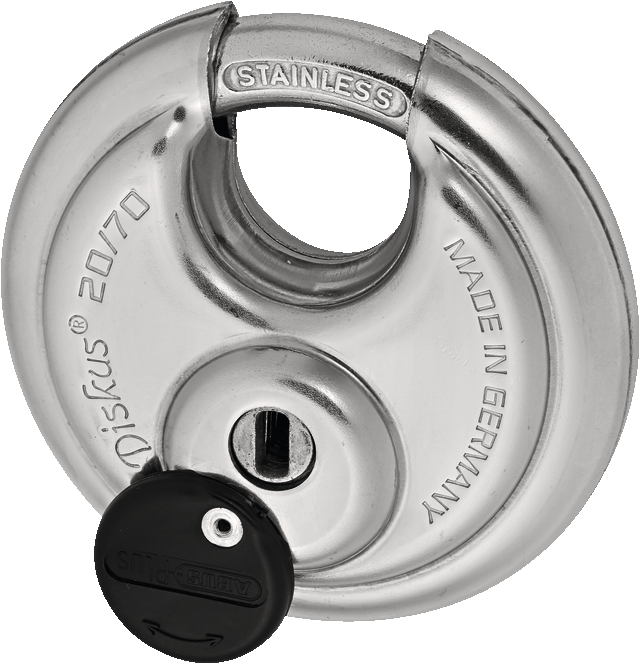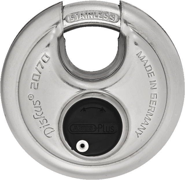 Med en Abus Diskus Plus 20 hængelås kan du få programmeret din hængelås til din Plus cykelnøgle. ABUS Diskus®-låsen er en speciel form for hængelås med ekstra fordele. Formen på Diskus®-låsen giver effektiv beskyttelse mod de mest almindelige måder at komme ind på. Udformningen af den lille bøjleåbning betyder, at der næppe er plads til angreb på skaftet. Da ABUS Diskus®-låsen primært er lavet af rustfrit stål, bruges den især, hvor sikkerhed og beskyttelse mod korrosion er påkrævet. Lastbiler, varevogne, døre, porte, lader, kældre osv. kan alle låses med ABUS Diskus 20.