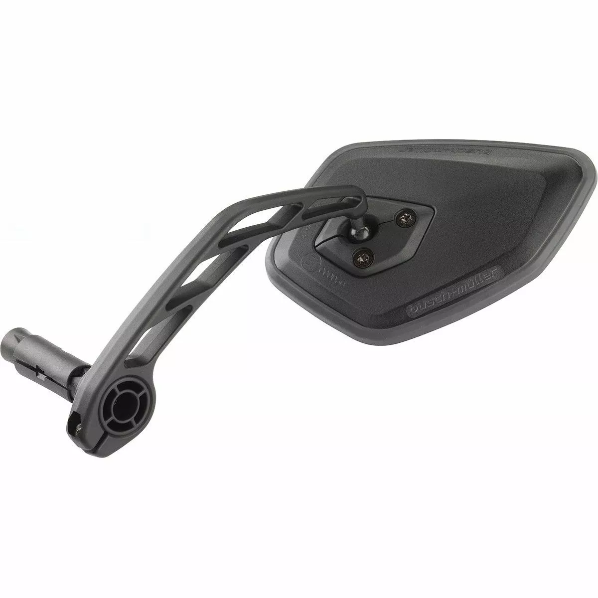 Stabil montering på styrets højre ende med den indvendige styr klemme, der er fremstillet af aluminium. Indvendig styr diameter mellem 14,5 til 18,5 mm. Spejlet kan anbringes vinklet 45°, stående eller hængende under styret.