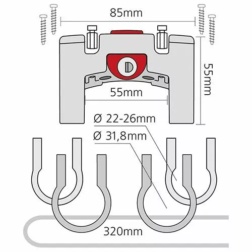 Der medfølger beslag til styrdimensioner 22-26mm samt 31,8mm (oversize)