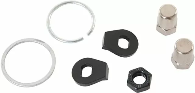 Bolte, skiver og låseringe, du skal bruge til montering af dit Nuvinci nav – passer på både N330, N360 og N380 Nuvinci nav – sættet består af: aksel møtrikker, næse skiver, tandhjul låsering tandhjul afstandsstykke, selvlåsende møtrik N360H-STDH-01.