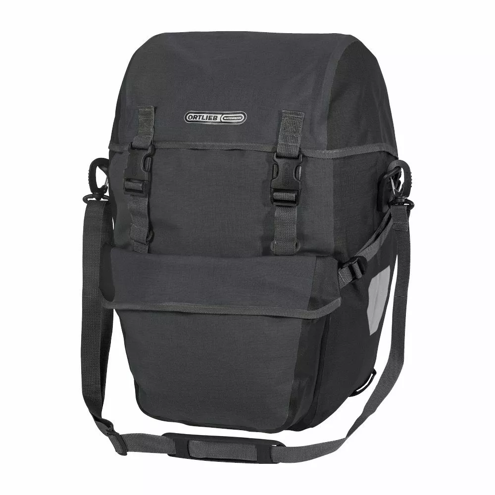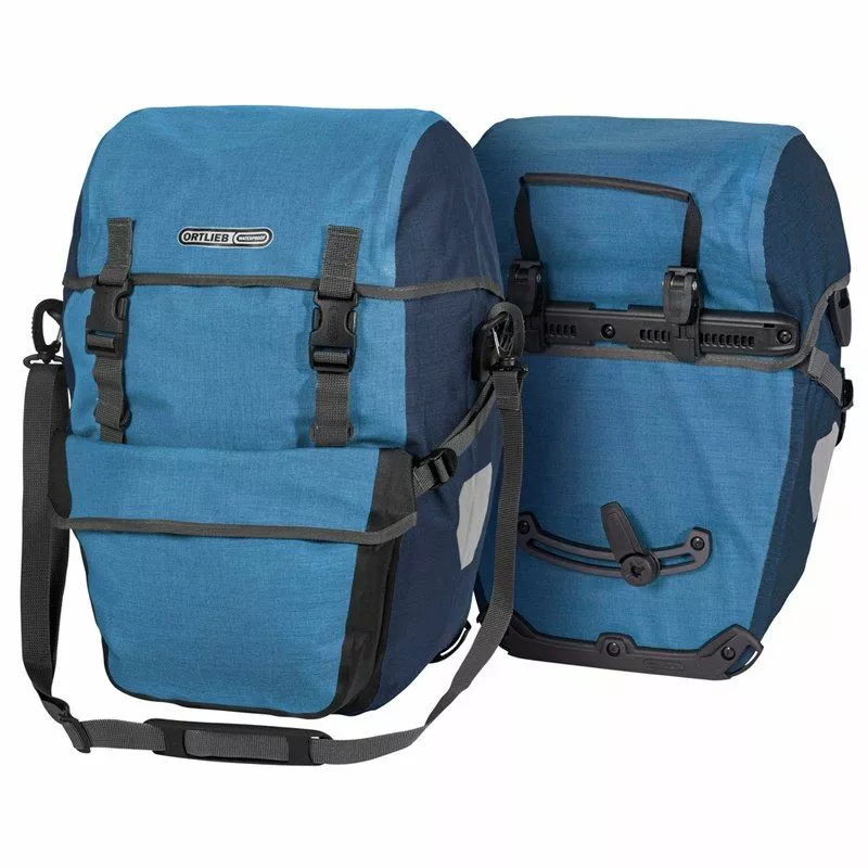 Tasken kan monteres på begge sider af bagagebæreren og kan derfor let bruges enkeltvis. Den kan også bruges med Ortliebs bæresystem, der kan forvandle tasken til en rygsæk.