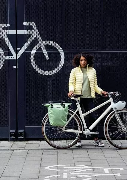 Din rummelige ét klik indkøbspose, Bike–Shopper, med Ortlieb´s QL2.1 system er den hurtig at fastgøre fjernefra din bagagebær. Den fleksible indkøbspose forbliver stabil – også på ujævne veje. De justerbare bæreremmegør det komfortabelt at bære tasken på din skulder (justeres ved trykknapper), og de vil ligeledes ikke være i vejen under cykelturen.