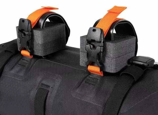 Ortlieb Handlebar-Pack styrtaske leveres med fire kroge, der muliggør fastgørelse af Ortlieb Accessory-Pack tasken til yderligere opbevaringsplads. Bestående af afstandsstykker og to stærke velcro-stropper sikrer monteringssystemet en sikker fastgørelse til enhver form for styretype, inklusive carbonstyr. Ortlieb Handlebar-Pack er afstivet indvendigt og fastgørelse af på head-tuben giver ekstra stabilitet – i ethvert terræn.