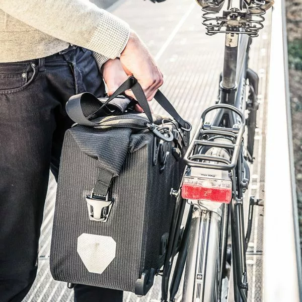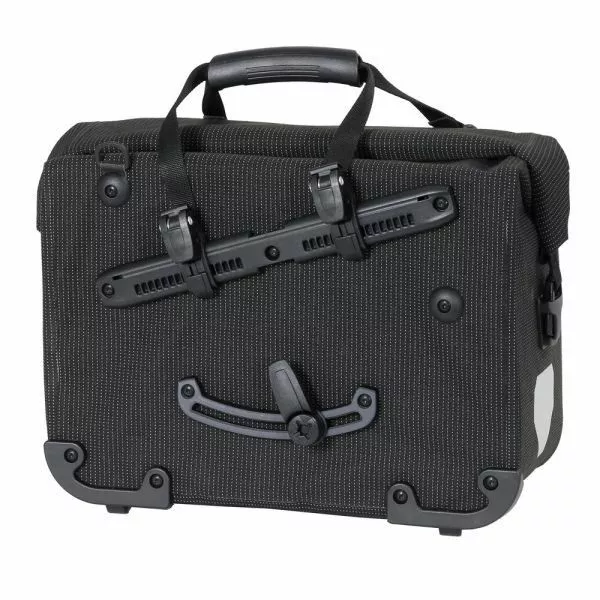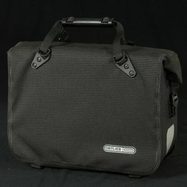 Den vandtætte dokumentmappe med rulle lukning kan hurtigt monteres på bagagebæren og ligeså nemt tages af. Kontor tasken har plads til to store A4 mapper, kontorartikler, mobil eller meget andet. Med den polstredeNotebook taske (fås som ekstra tilbehør) er det en perfekt laptop taske (op til 15,4 “). To store 3M Scotchlitereflekser og det reflekterende ORTLIEB logo giver god sikkerhed på de mørke dage og i dårligt vejr.Kantbeskyttere og en solid bund giver optimal beskyttelse af tasken.