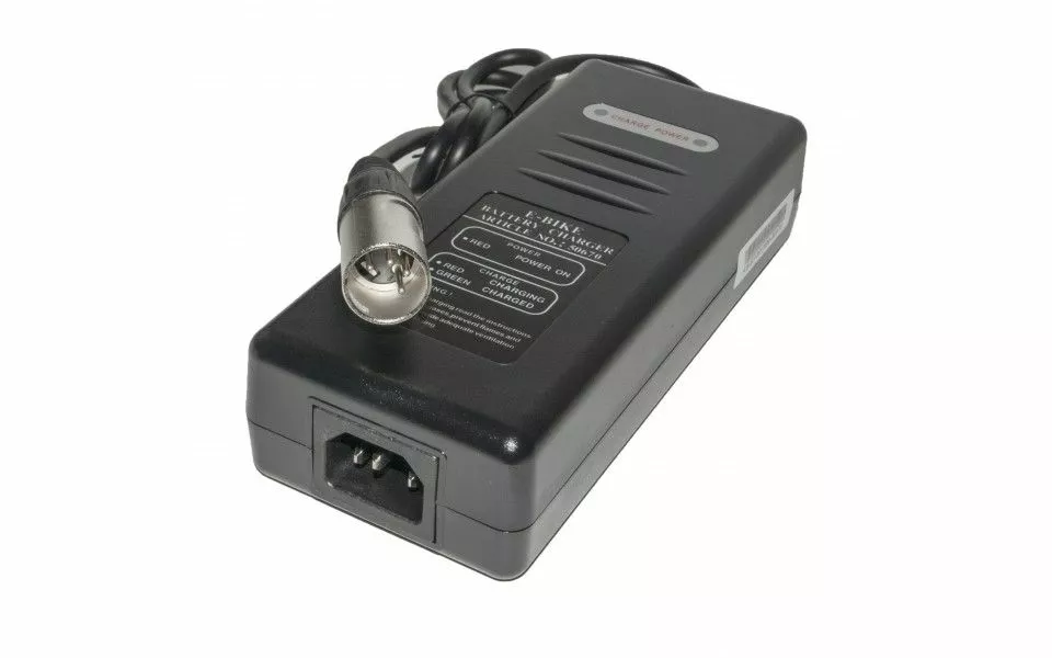 Oplader fra Promovec, med 4 stikben. Laderen bruges til de fleste systemer fra Promovec med 36 volt (2Ah) og 4 stikben. Billedet kan variere.