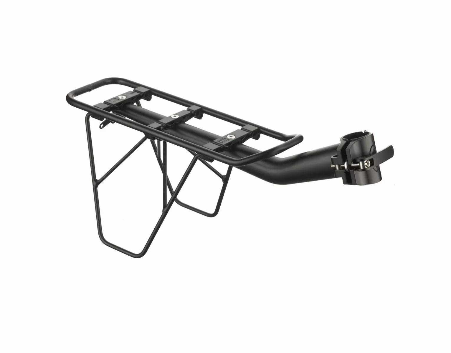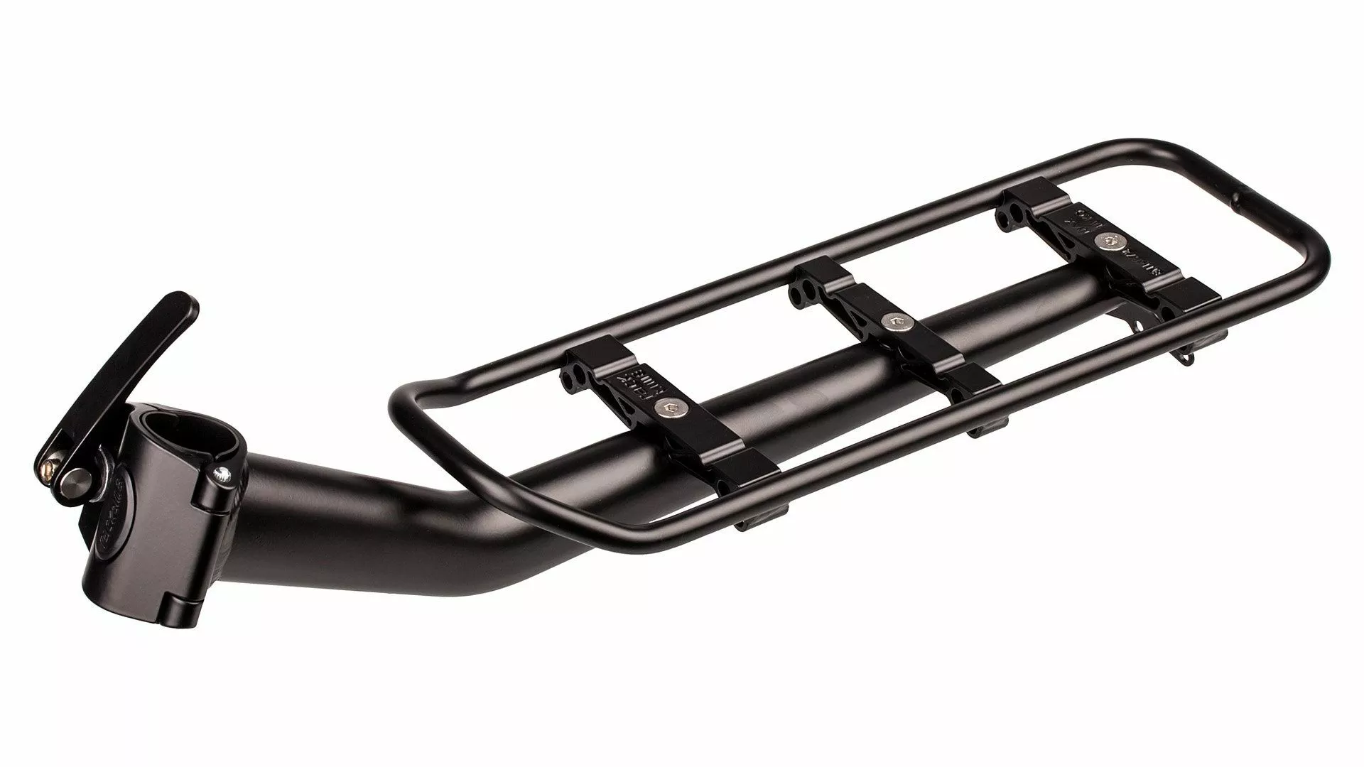 Lækker fleksibel sadelpinds monteret bagagebærer fra Racktime – Clip-it. Bagagebæreren af- og på monteres nemt på sadelpinden med et QuickRelease beslag der kan sidde på sadelpinde fra 26,6 mm til 32 mm, hvor størrelsen tilpasses ved hjælp af medfølgende gummeringe.