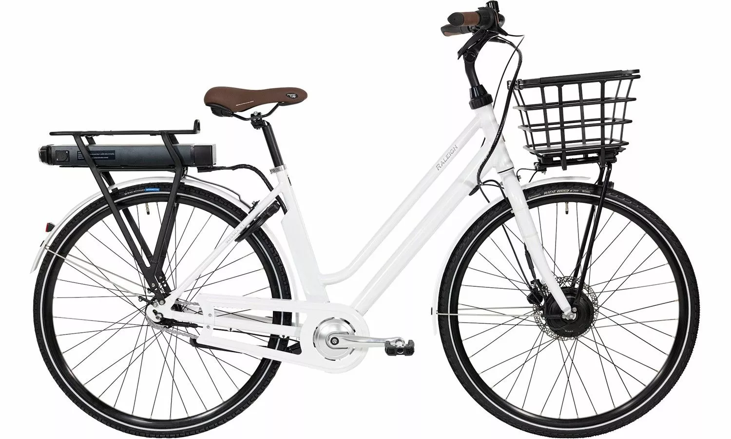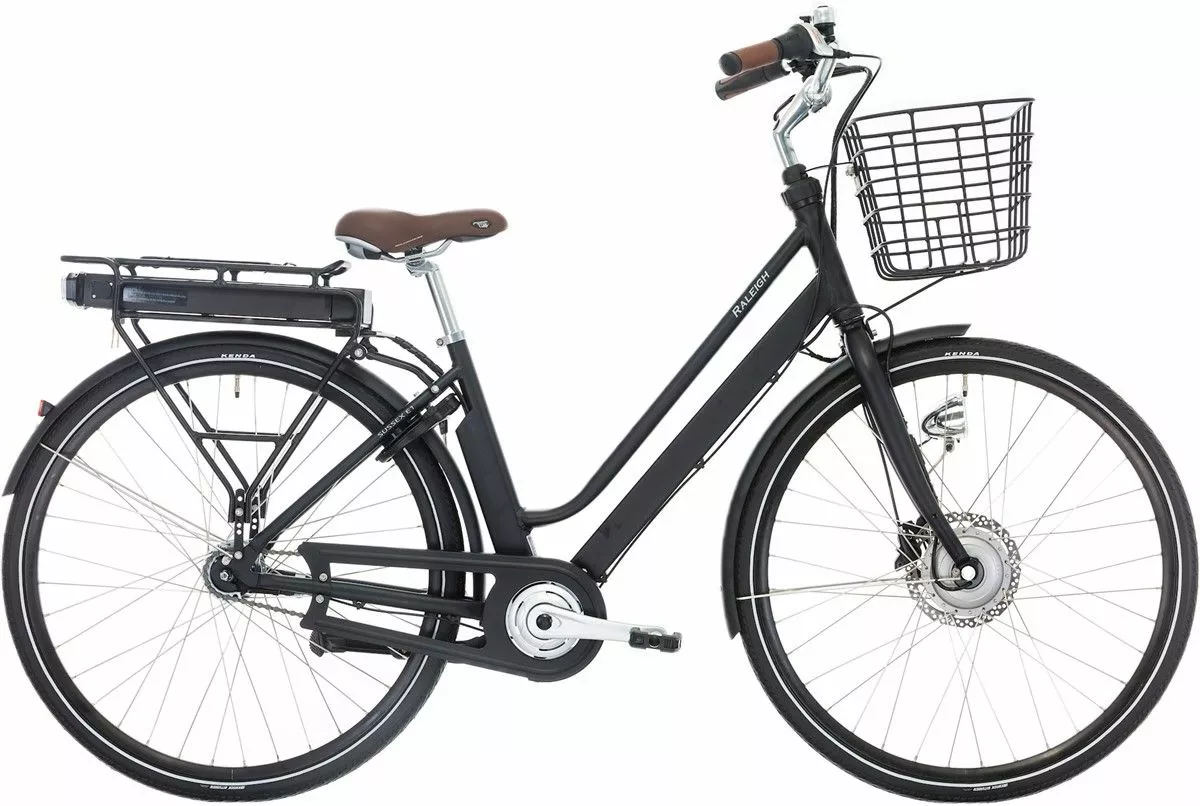 Raleigh Sussex fås i flere farver med lavindstigning og er udstyret med 7 indvendige gear, lygtesæt, forsikringsgodkendt lås, Shimano hydrauliske forbremse samt fodbremse og led display.
