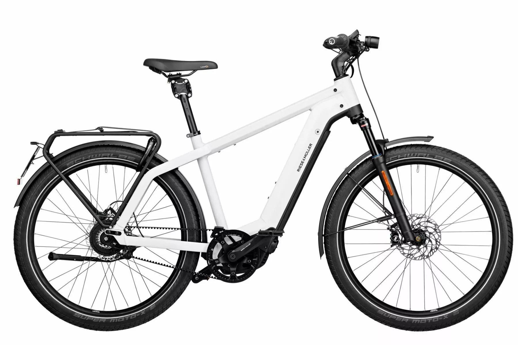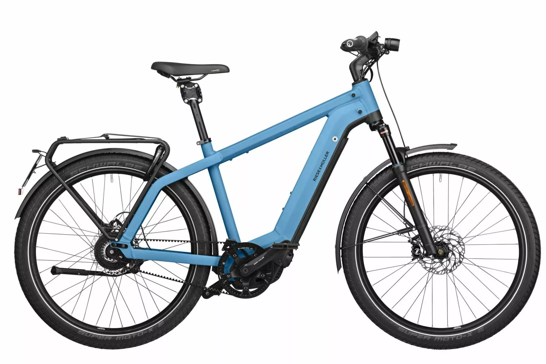 Riese & Müller Charger3 GT Vario er udstyret med den nyeste version af en 36 V / 350 Watts Bosch Performance Speed centermotor (assistance op til 45 kmt) og du kan nemt køre op til 60 km på et 14 Ah / 500 Wh batteri – Motoren sørger selv for at balancere batteriforbruget jævnt mellem begge batterier, så ingen af dem bliver overbrugte. Bosch Performance Speed motoren trækker direkte på kranken, og giver dig med rotations- og momentsensorerne en god og komfortabel føling med motorens kraft.