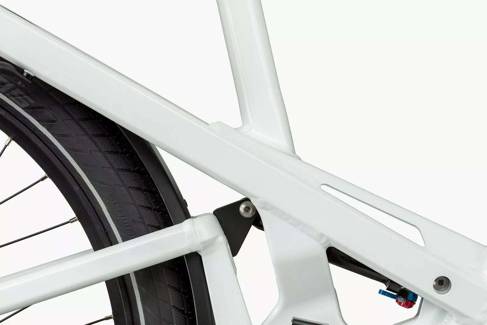 Det helt særegne ved Homage-serien, er at du har affjedring både fortil og bagtil, og bagagebæret er en integeret del af elcyklens design – du har altså en “Full suspension Street bike”, hvilket giver dig en lækker følelse og ekstremt behagelig køretur