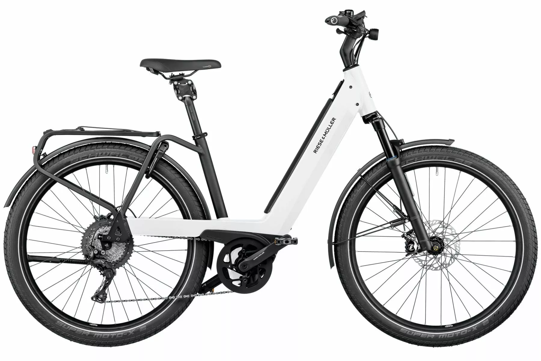 Fuld power med den nye Riese & Müller Nevo GT Touring – med mulighed for at putte helt op til 1.125Wh batteri (kun 1.000wh ved 26″) kombineret med den kraftige Bosch Performance CX 4th gen 36V / 250W centermotor – den kombination giver dig helt op til 2100 km rækkevidde på en opladning. Bosch Performance CX centermotoren trækker direkte på kranken, og giver dig en rigtig god føling med kraften, der kommer ud i selve trådet. Du kommer lettere (og mindre svedig) frem til arbejde, skole eller hvor du nu skal hen. Elcyklens køre genskaber er som stort set som en almindelig cykel på grund af motorplaceringen – selv uden benyttelse af motoren kan du bruge den som helt almindelig cykel.