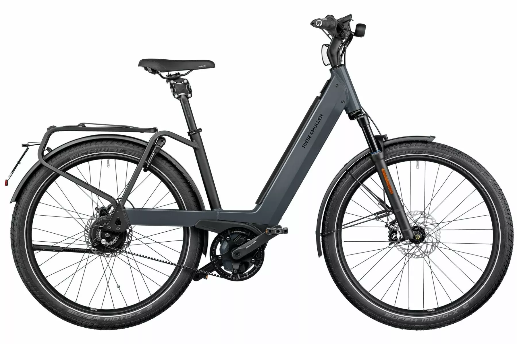 Riese & Müllers Nevo GT Vario HS fås i 26″ 43 cm, 27,5″ 47, 51 eller 56 cm og er udstyret med det Trinløse Enviolo / Nuvinci N380 og Gates Carbon remtræk, for minimal vedligeholdelse og optimal kørefornemmelse. Riese & Müllers Nevo GT Vario HS er lige som de øvrige Nevo-modeller udstyret med Magura MT4 skivebremser, integreret lygtesæ, one-key system og affjedering i forgaflen (Suntour XCR32).