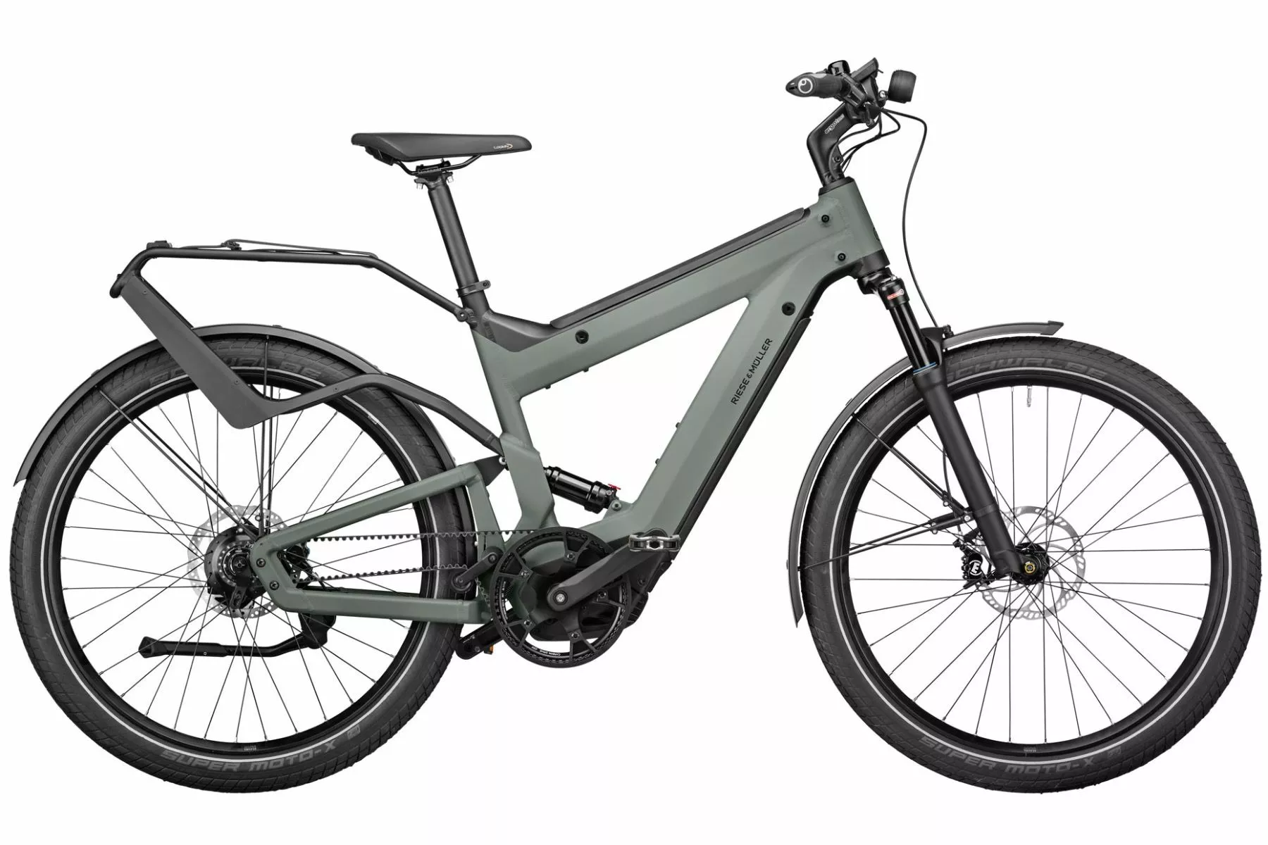 Riese & Müller Superdelite GT Rohloff fås i 3 størrelser, 3 farver og er udstyret med 14 indvendige Rohloff E14 gear (elektronisk), Gates Remtræk, Suntour Aion 35 Air affjederet forgaffel, Suntour RS-19 dæmper, SuperNova M99-lygtesæt, Magura MT4 hydrauliske skivebremser, Basil MIK bagagebærer – hjulene er 27,5″ monteret med Schwalbe Super Moto-X 60-584 – det vi hos EBIKECENTER også kalder “chubby-tires”.