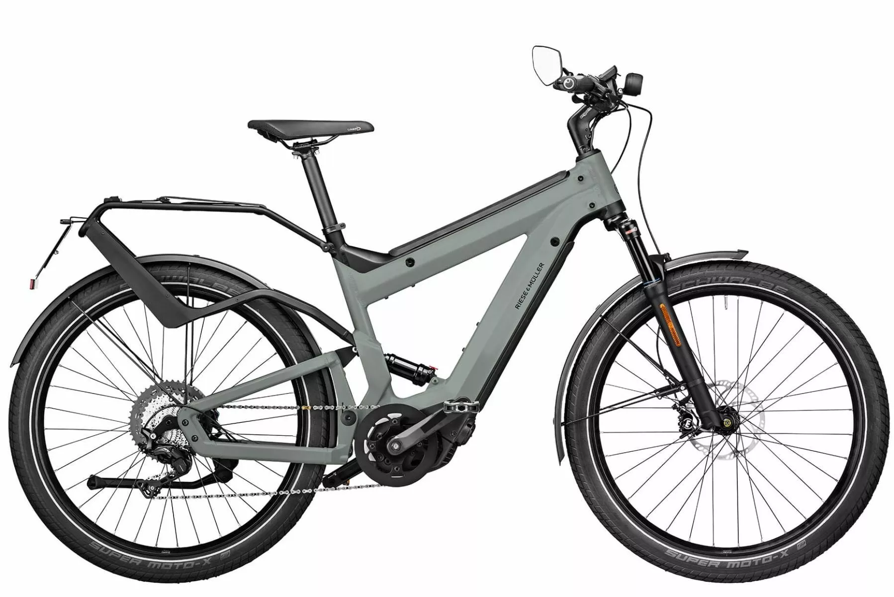 Riese & Müller Superdelite GT Touring HS fås i 3 størrelser, 2 farver og er udstyret med Shimano Deore XT 11 udvendige gear, Suntour Aion LO-R olie baseret affjederet forgaffel, X-Fusion dæmper, Basil MIK bagagebærer, Abus Bordo 90cm Alarm One-key foldelås – hjulene er 27,5″ monteret med Schwalbe Super Moto X 62-584 – det vi hos EBIKECENTER også kalder “chubby-tires”, Magura MT4 skivebremser og Supernova M99 lygtesæt – så kan du også krydre din tur med bedre affjedering, Bosch Kiox Display og Bosch “Anti-breaking-system” for øget sikkerhed (OBS! ABS kan ikke kombineres med Fox affjedring).