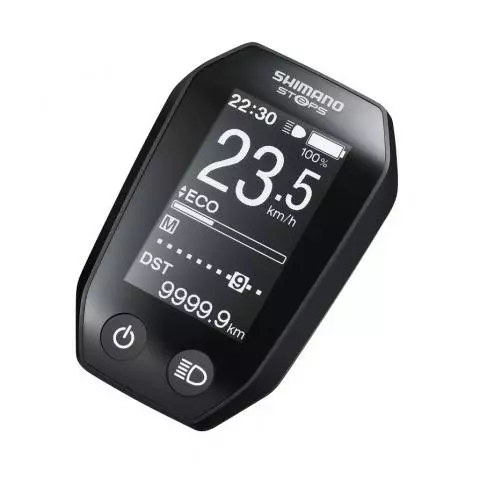 Den kompakte skærm er “kommandocentralen” i STePS systemet. Det klare display med høj kontrast giver øget læsbarhed. Betjeningen er intuitiv via kontakterne. Displayet viser de mest almindelige cykelcomputer informationer som aktuel hastighed, gennemsnitshastighed, maksimal hastighed og distance. Kapaciteten af batteriet vises såvel som den tilbageværende rækkevidde. For elcykler med den innovative Di2-gearsystem vises også det valgte gear.