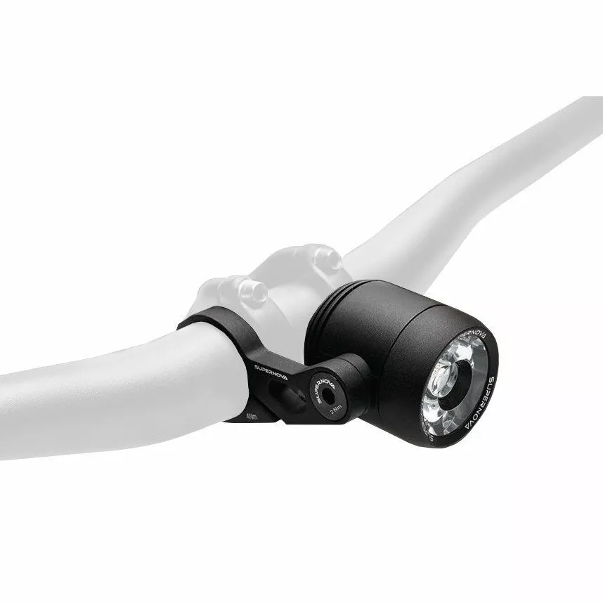 Supernova V521s leveres i mat sort aluminium, og du kan vælge en version til montering på styret