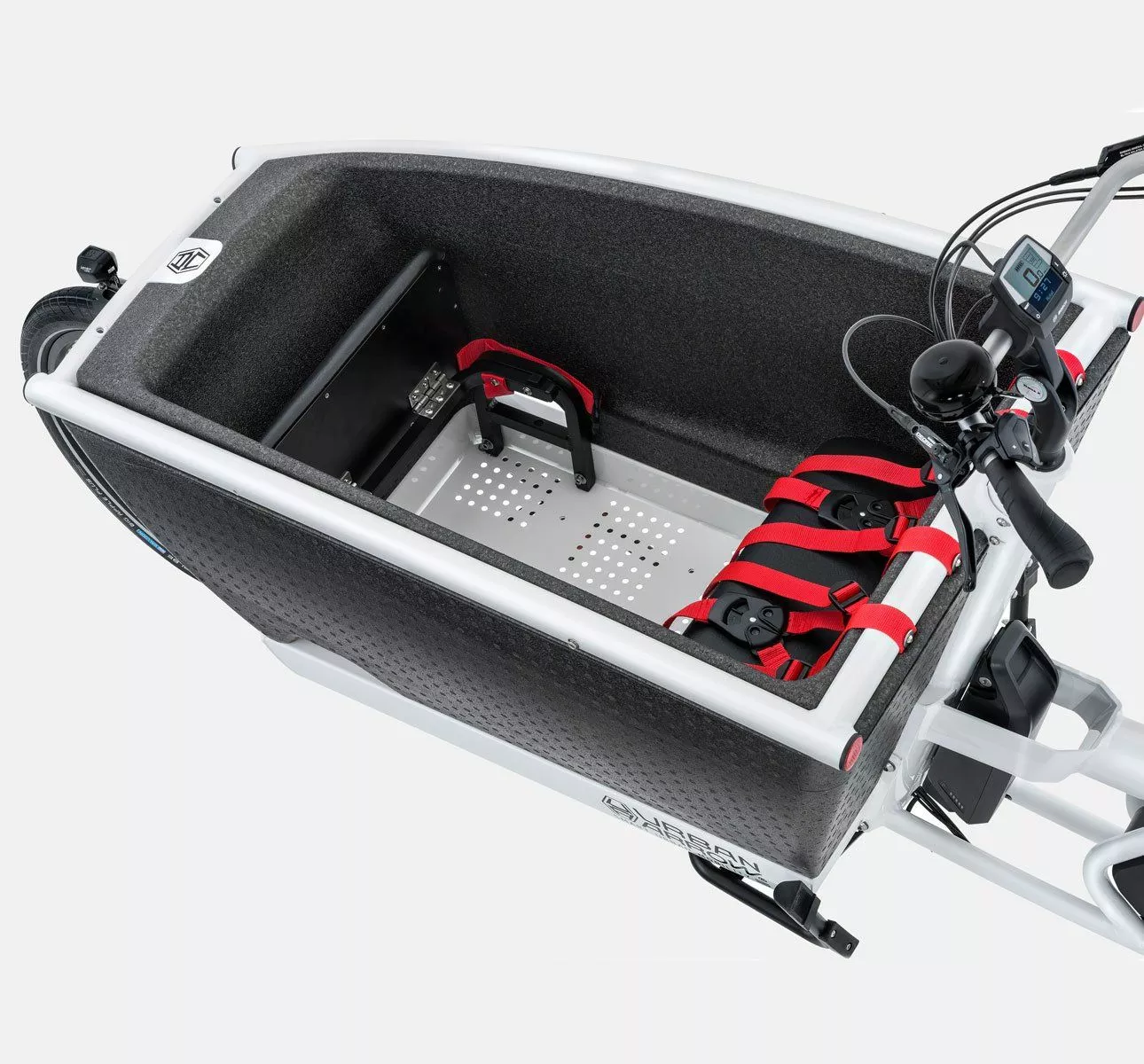 Et behageligt sæde, som du kan vippe op når det ikke skal bruge. Bænken monteres i fronten af din Urban Arrow Family.