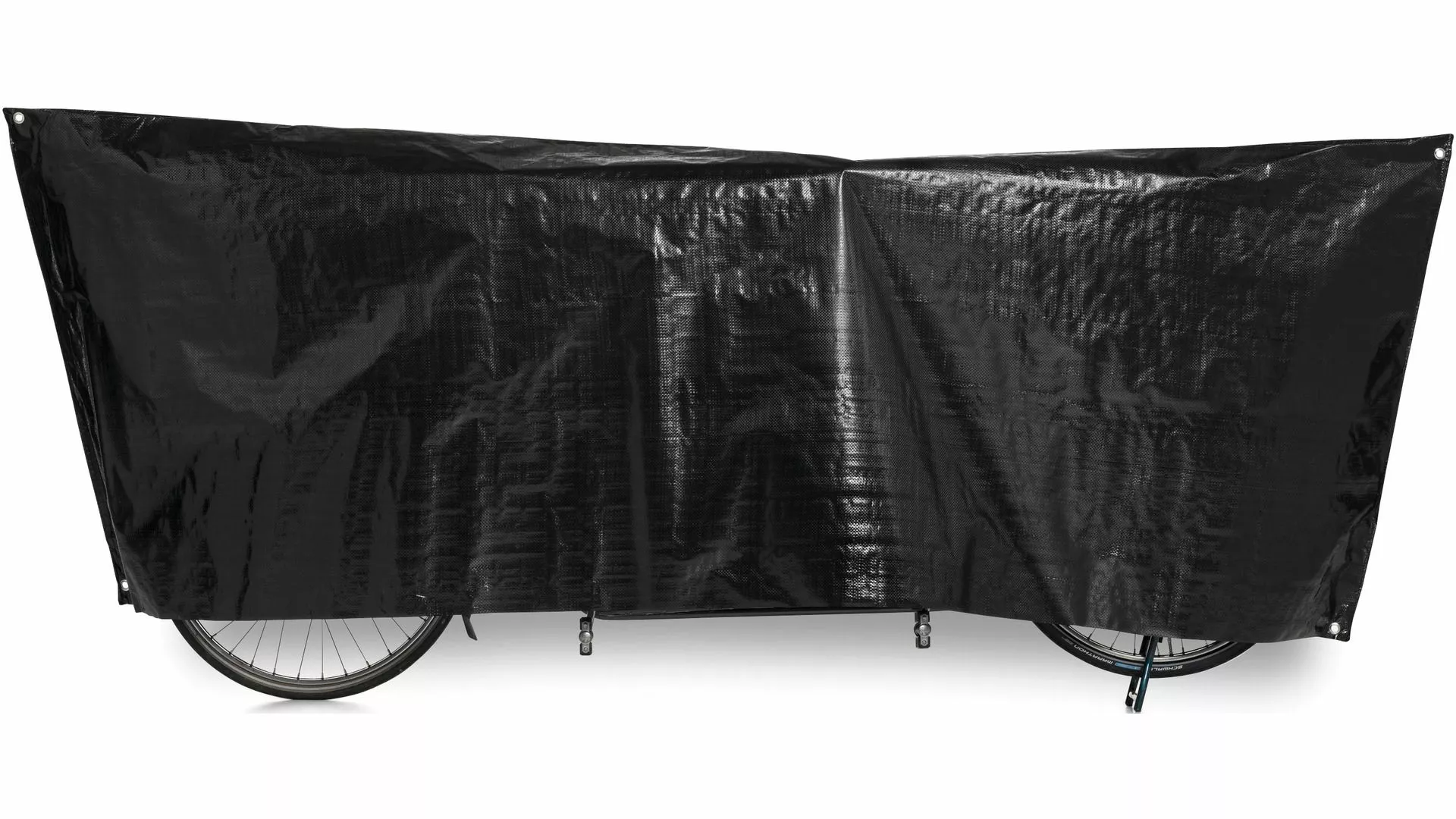 VK laver forskellige typer og kvaliteter af cykelgarager – VK Cykelgaragen er et tynd vævet belægning, belagt på den ene side med plast, egnet som cykelgarage til enhver tandem. Cykelgaragen er med øjer og 5 m snor til fastspændning.