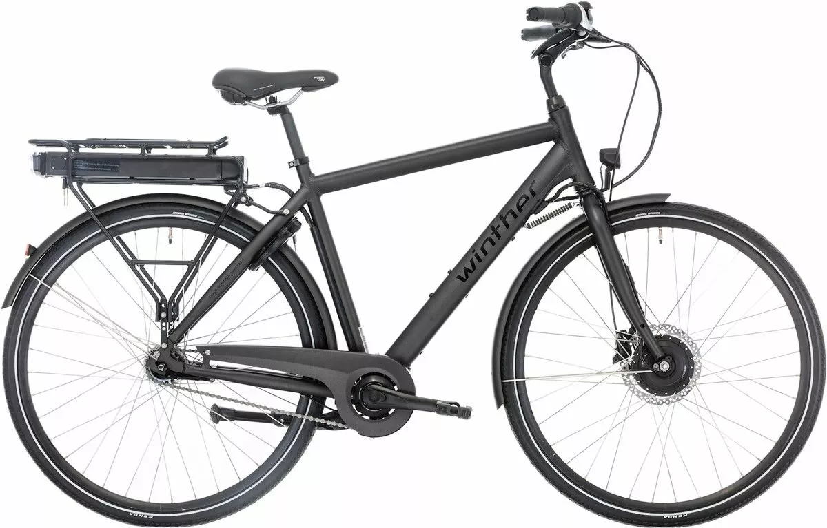 Winther Superbe 1 fås i sort og er udstyret med 7 indvendige gear, lygtesæt, forsikringsgodkendt lås, Shimano hydrauliske forbremse samt fodbremse og led display.